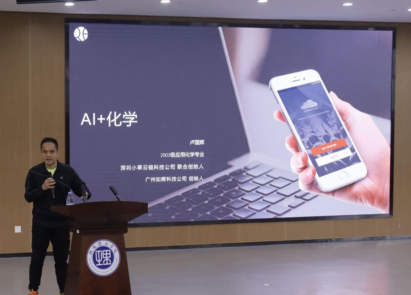 卢国辉以“AI人工智能+化学+未来”为题,分享自身在湖南理工的求学经历与后续创业故事,提出“爱大学、爱工作、爱创业、爱化学、爱湖湘与爱未来”的“六爱”倡议,激励新生成长为符合学校培养要求的复合型人才。