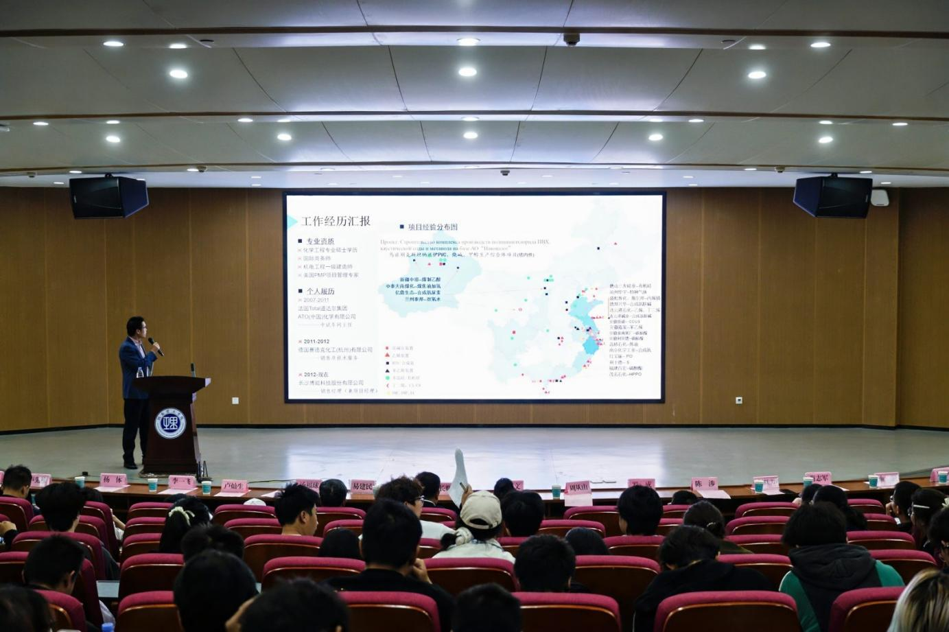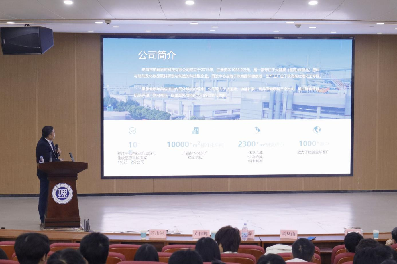 王一霖围绕“人的健康与美丽应该由内而外散发”的理念,介绍相关领域项目的发展历程与运作模式,让同学们明晰学校化工专业在大健康、美妆领域的应用前景。