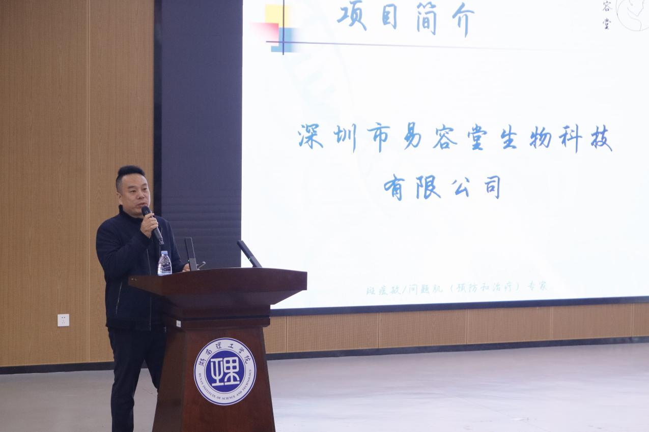 管山河以“易容堂斑痘敏项目介绍”为主题,解读项目定位、技术优势及市场前景,梳理学校化学化工专业在美妆护肤、生物科技领域的就业方向。