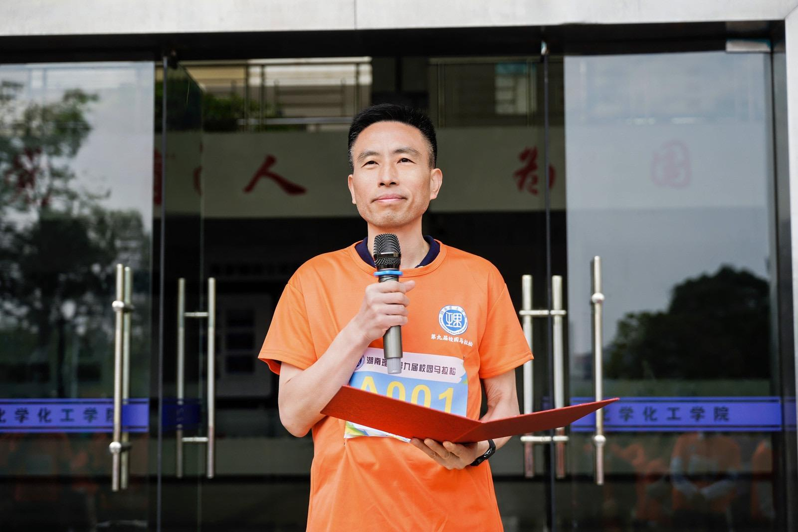 10月25日上午,以“奔跑青春、筑梦南湖”为主题的第九届湖南理工校园马拉松在学校南院七栋化工楼前坪举行。学校党委书记张国云、校长曾祥君、副校长刘长辉、湖南石油化工职业学院校长唐课文、原副校长易健民,学校校友联络中心(教育基金会)、化学化工学院领导、教师代表,化工学院校友分会理事会主要成员,2001级化工校友,湖理跑团校友及化工学院学生代表共400余人参加。张国云在启动仪式上指出,校园马拉松已从化学化工学院的特色赛事,成长为学校弘扬体育精神、凝聚校友情谊、展示师生昂扬风貌的重要平台。曾祥君向重返母校的校友表示热烈欢迎,鼓励全体参赛人员跑出“无畏”的奋进姿态、“同行”的温暖情谊和“传承”的责任担当,展现湖南理工人的精神风采。化工学院校友分会秘书长卢国辉主持了启动仪式。