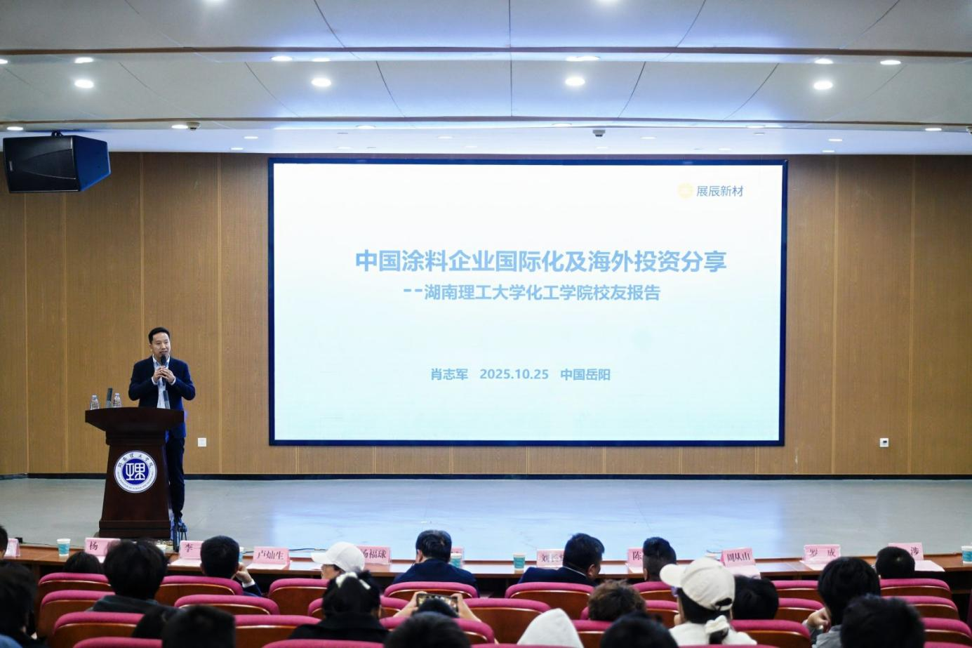随后,1997级校友肖志军、2000级校友南强先后开展主题分享。肖志军以“中国涂料企业国际化及海外投资分享”为核心主题,结合行业实践与市场洞察,系统梳理了中国涂料企业突破地域壁垒、布局海外市场的核心路径,同时深入剖析了企业国际化进程中为化工专业学子带来的就业机遇、职业发展方向,以及对应届生在专业能力、跨文化沟通等方面提出的具体要求,为学子对接行业前沿提供清晰指引。