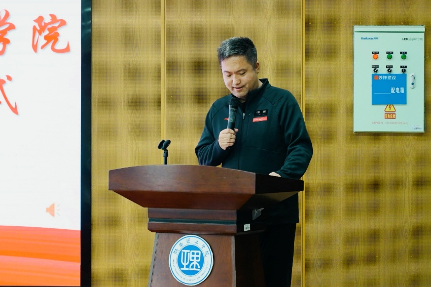 校友联络中心主任陈超文老师、经管学院党委书记张志刚老师、校友联络中心副主任李一飞老师、经管学院副院长易翠枝老师、捐赠方代表、广东省湖南理工学院校友会(筹)总会秘书长李小方女士及经管学院学生代表出席仪式,经管学院研究生辅导员易萧老师主持仪式。