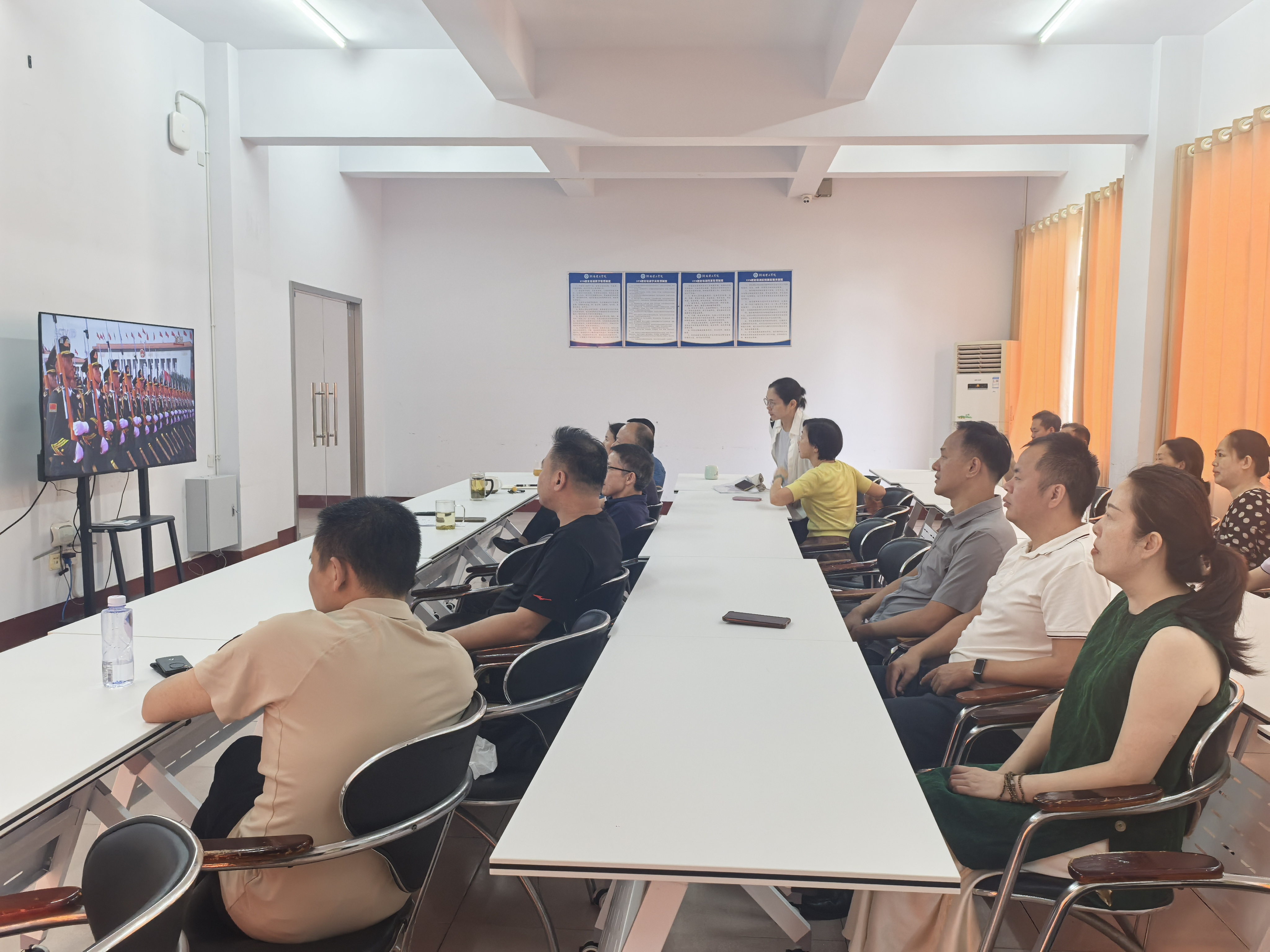 9月3日上午,湖南理工学院机关第十八党支部组织全体党员集中收看纪念中国人民抗日战争暨世界反法西斯战争胜利80周年阅兵仪式,以“精神检阅”开展主题党日活动,回望历史、凝聚力量。 直播中,徒步方队、装备方队与空中梯队依次亮相,国产新装备引发党员们阵阵赞叹。大家为军队实力、国家发展倍感自豪。 观礼后,党员们一致表示,要把观礼的振奋转化为工作动力,将爱国教育与岗位职责结合,以实际行动践行“为党育人、为国育才”使命。